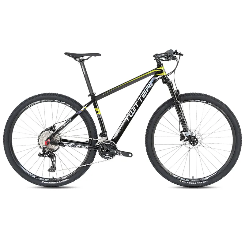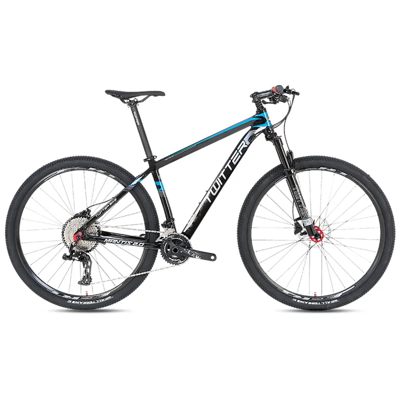 Twitter Mantis 2.0 featuring SHIMANO gears for smooth shifting, ZOOM hydraulic disc brakes for unmatched control, and a sturdy, sleek alloy frame.